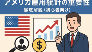 米国経済 アメリカ雇用統計の重要性を徹底解説(初心者向けに) アメリカの雇用統計は経済を知るうえで非常に重要な指標です。今回はその指標について考えていきたいと思います。これは、毎月第1金曜日の夜(日本時間21時30分、夏時間では21時30分)に、アメリカの労働省から発表されます。この統計を見ることで、... 2025.09.29 米国経済