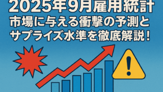 米国経済 2025年9月雇用統計が市場に与える衝撃の予測とサプライズ水準を徹底解説! 今回は、投資初心者の方にも分かりやすく、アメリカの雇用統計(特に非農業部門雇用者数、NFP)が持つ意味と、今後の市場反応の予測シナリオを解説していきます。特に、直近で発表された8月分の結果を踏まえ、次に発表される9月分がどの程度の乖離(かい... 2025.09.30 米国経済
